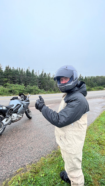 - But shes no wimp, We just sat in near silence(as opposed to chatting over the helmet walkie talkies) as we rode the 2 hrs back west out of the mega rainy Cape Breton region.